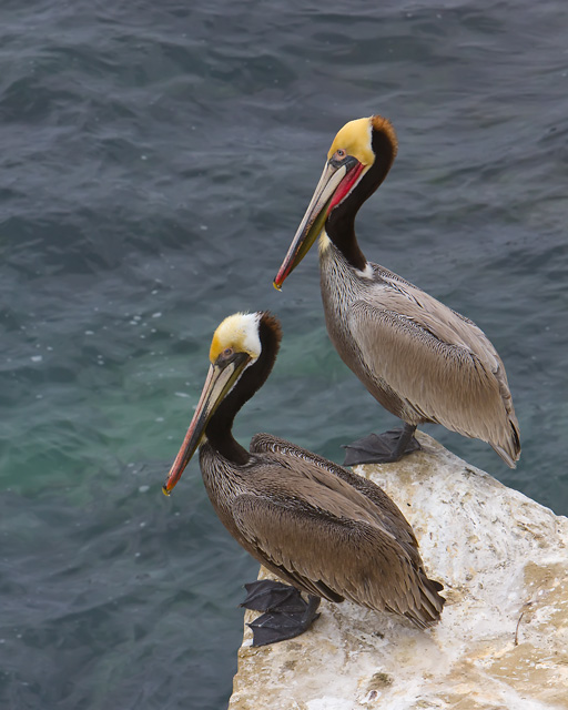 The California Brown Pelicans are putting on their best colors to get ready for mating season.