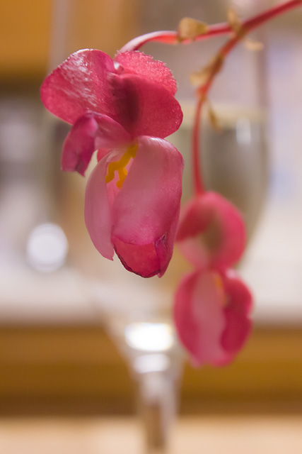 The superposition of the flower against the champagne flute caught me eye immediately when I glanced over to the kitchen counter. I can’t always explain why I find a particular composition appealing, but this one really attracted my attention. Perhaps I shouldn’t spoil it by trying to be too analytical.